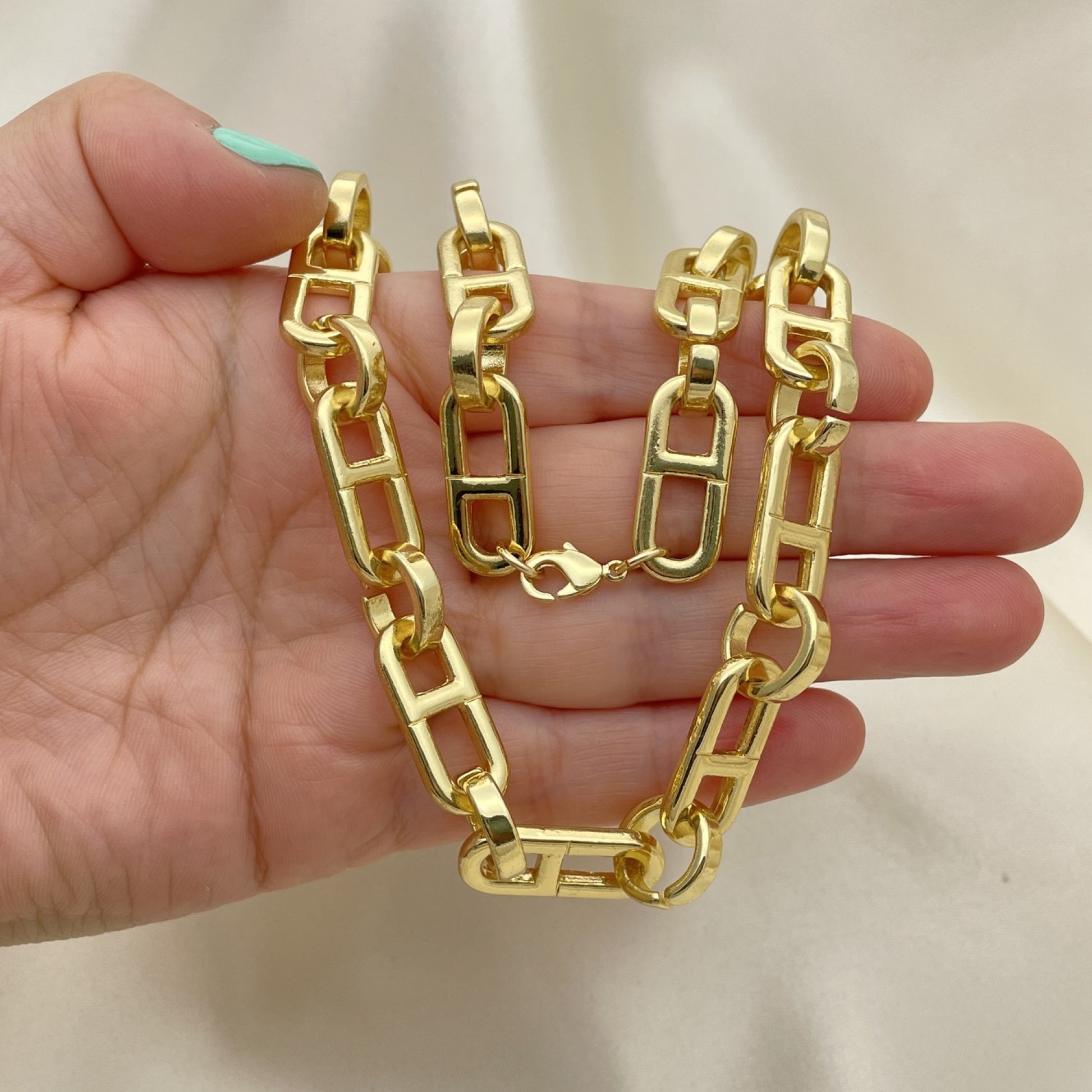 Oro Laminado Basic Necklace, Gold Filled Style Chunky Design, Polished, Golden Finish