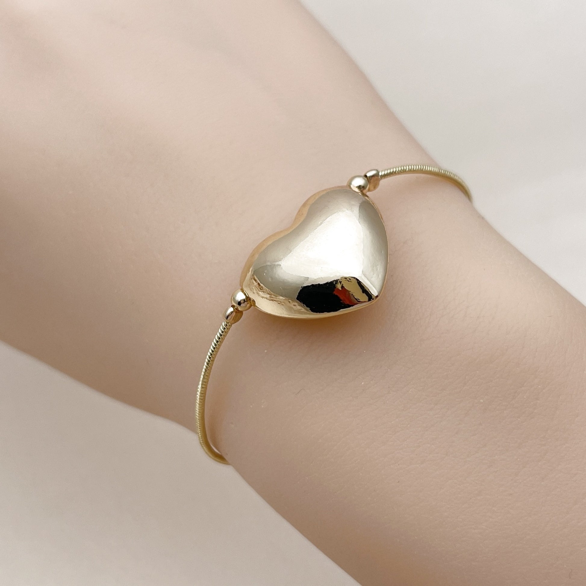 Oro Laminado Fancy Bracelet, Gold Filled Style Heart and Rat Tail Design, Polished, Golden