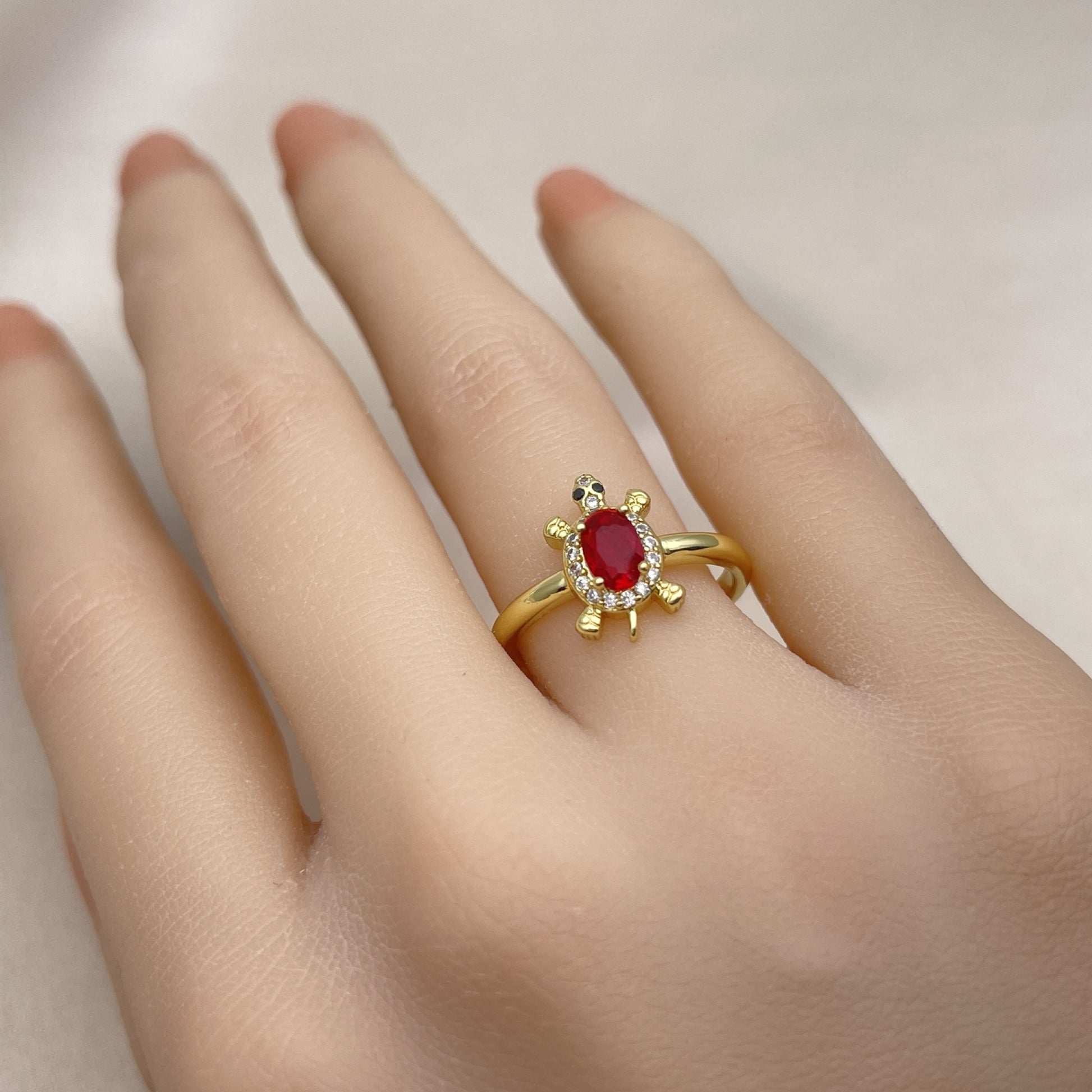 Oro Laminado Multi Stone Ring, Gold Filled Style Turtle Design, with Garnet Cubic Zirconia and White Micro Pave, Polished, Golden Finish