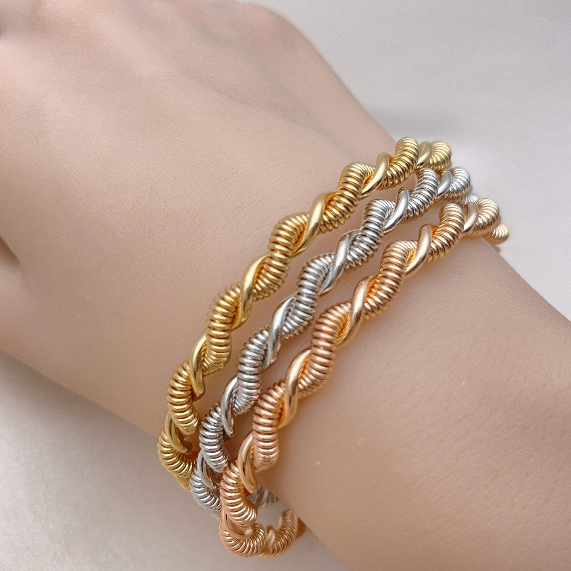 Oro Laminado Trio Bangle, Gold Filled Style Polished, Tricolor